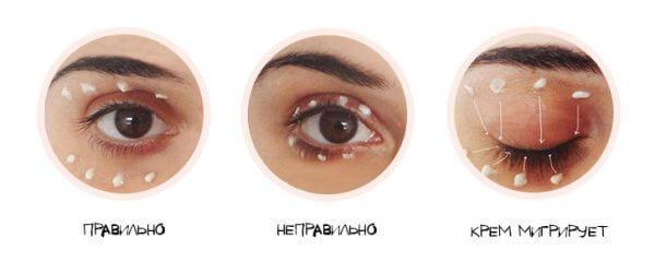 Для бажаного ефекту потрібно грамотно розподіляти крем на ділянках навколо очей: