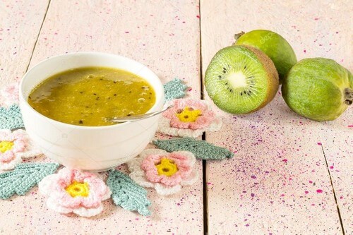 - Жовток збивають з соком ківі;