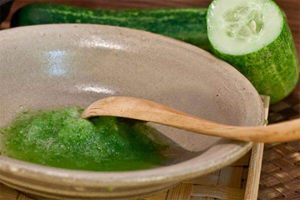Візьміть свіжий огірок і натріть його на дрібній тертці або пюрируйте в блендері. Влийте в огіркову кашку трохи оливкової або будь-якого іншого рослинного масла і розмішайте. Нанесіть склад на шкіру губ і потримайте хвилин 15. Змити можна простою водою.